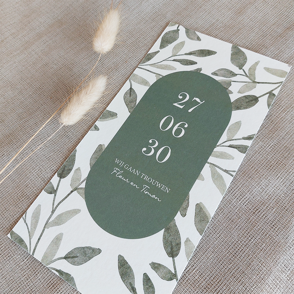 Dé jurk, dé ring, dus ook dé kaart. Dat die dingen perfect moeten zijn, begrijpen we als geen ander. Graag gaan wij met jullie in gesprek om samen de wensen door te nemen. Met oog voor detail gaan wij altijd op zoek naar de mooiste materialen en afwerkingen voor een persoonlijk ontwerp op maat. Met jullie aanvullingen kunnen jullie uiteindelijk de perfecte proefdruk verwachten.